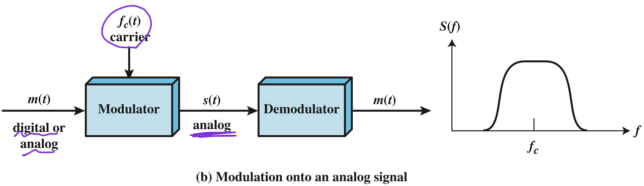 Modulator: 주어진 Data를 Analog signal로 변환한다. Carrier signal에 정보를 담아 전달한다.