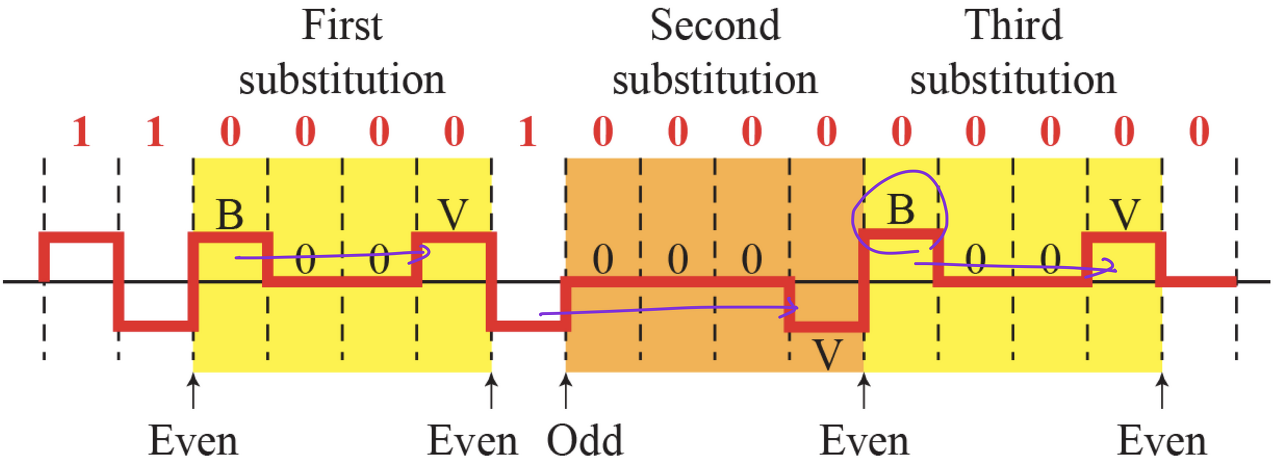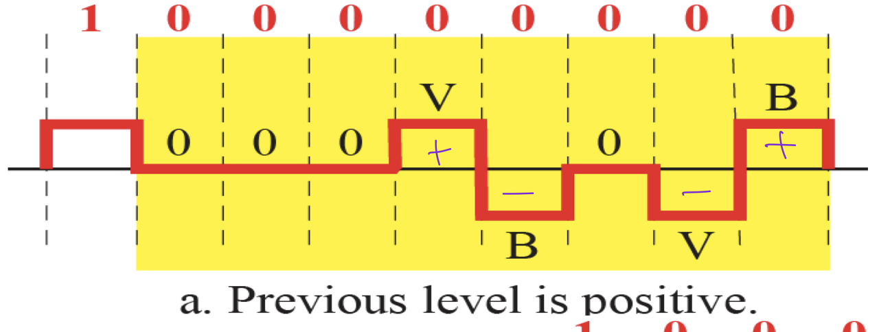 - 00000000 -> 000VB0VB, V: Violation, B: Bipolar(+,- 균형을 맞춤)