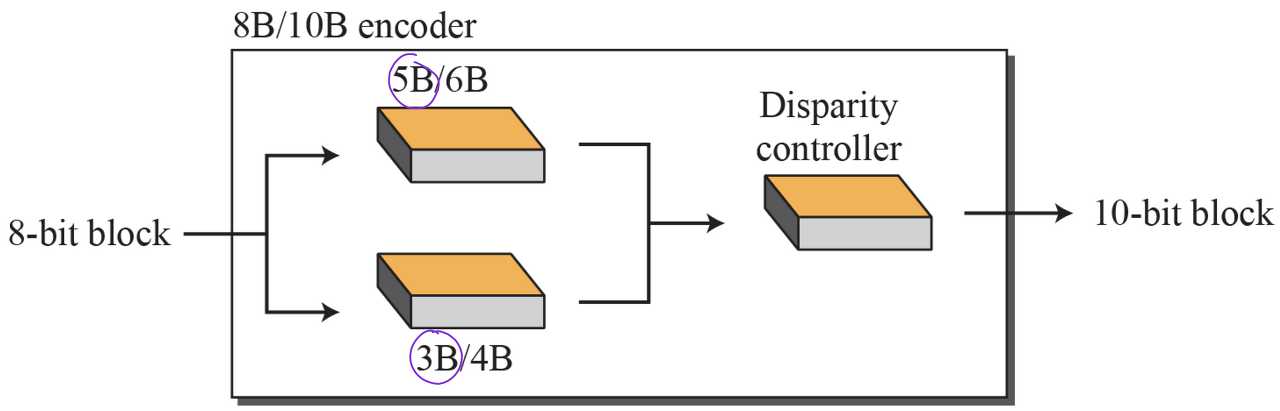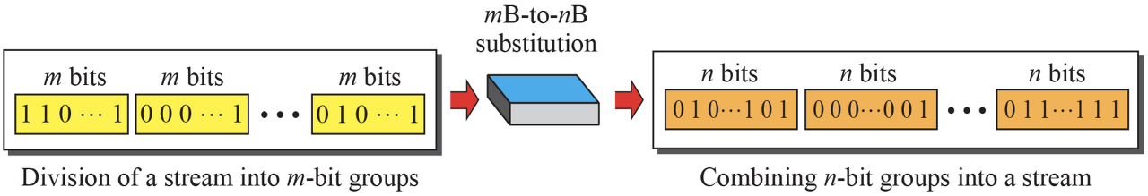 - mB/nB encoding technique (mbit nbit, m<n인 경우, line coding 특성에 더 잘 맞게)