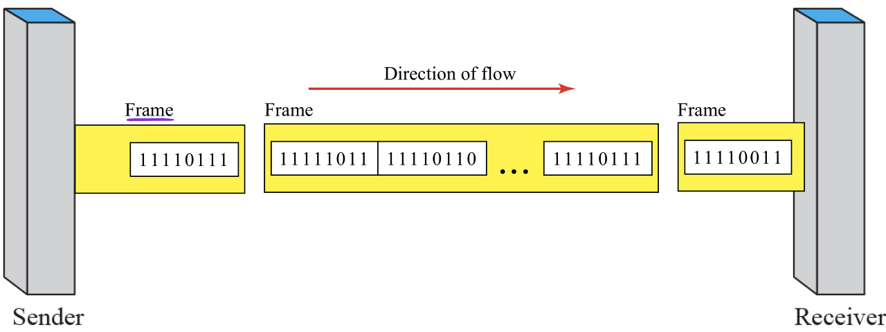 - 시간 동기화를 수행, data를 Frame단위로 전송한다.