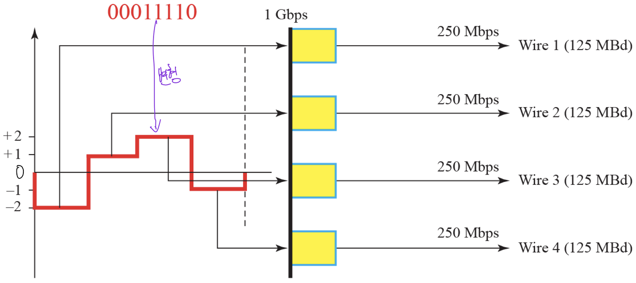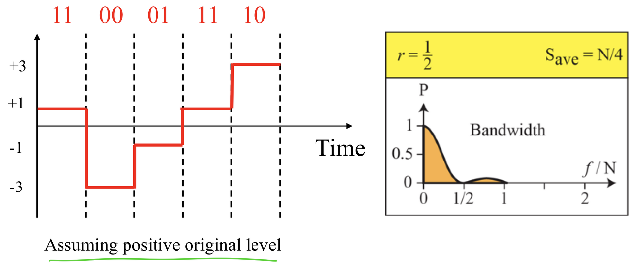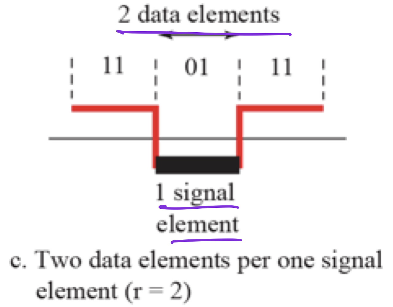 즉, 1개의 signal elements가 2bit를 표현하고, r = 2(Data element)/1(Signal elements)이다.