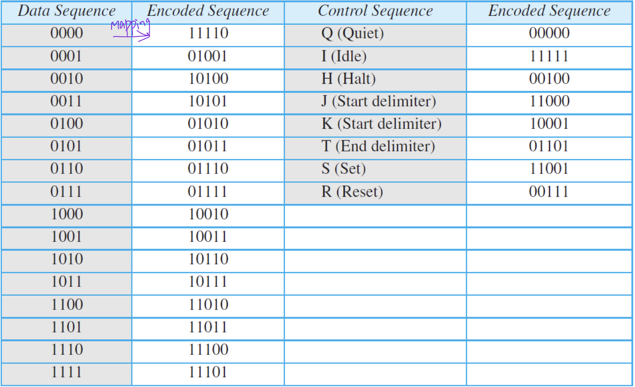4B/5B mapping codes: Fast Ethernet(100Mbps)