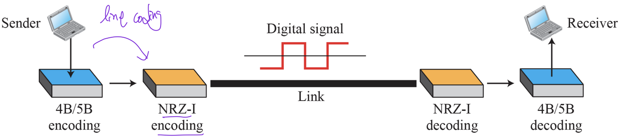 Using block coding 4B/5B with NRZ-I line coding scheme