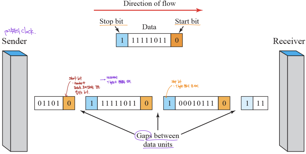 - receiver는 해당 bit를 수신함으로써, 이제 1byte가 전송된다는 것을 인지