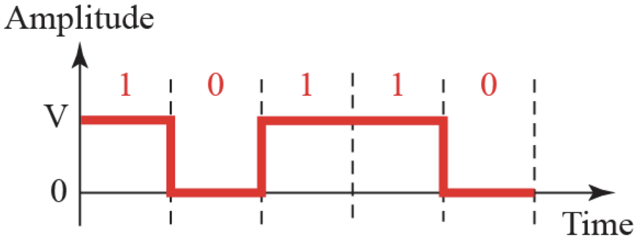- digital signals를 전송하는 가장 간단한 방법은 0과 1 bits를 위한 2개의 서로 다른 voltages를 사용하는 것이다.