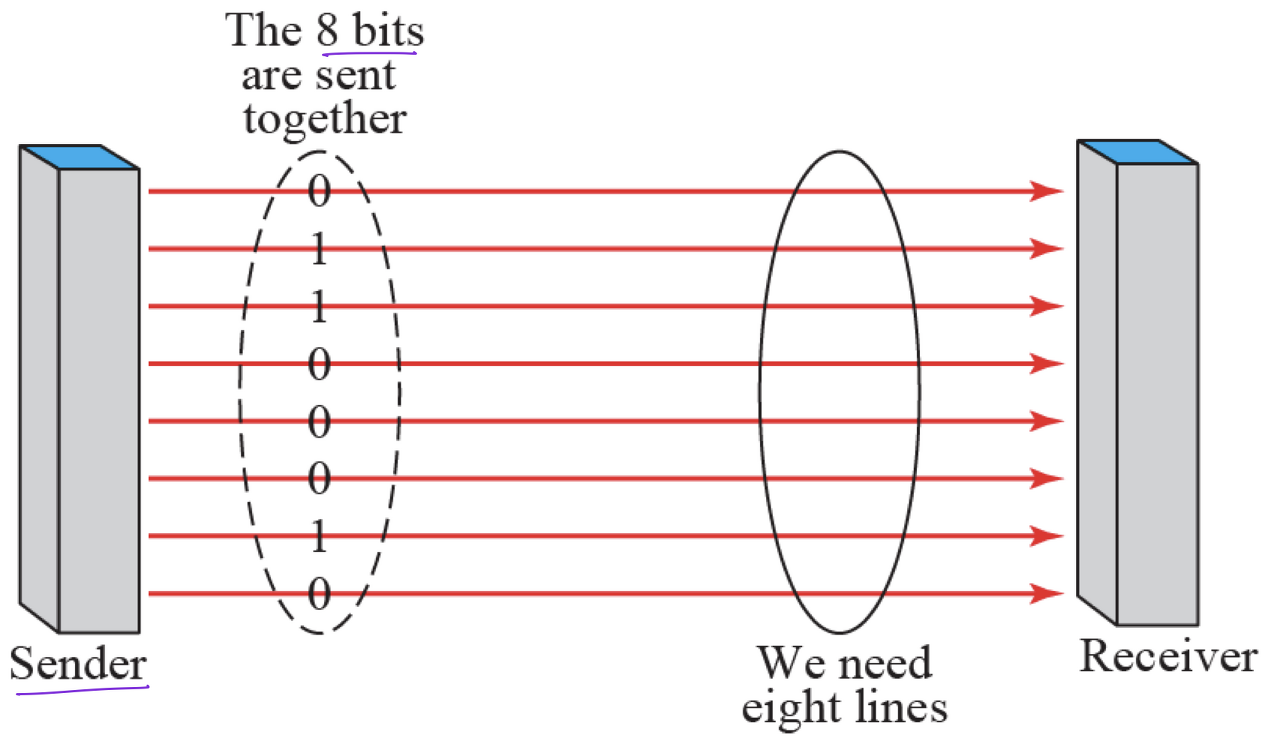 - clock을 일치시켜서 한 번에 여러 bit를 전송 전송량 증가