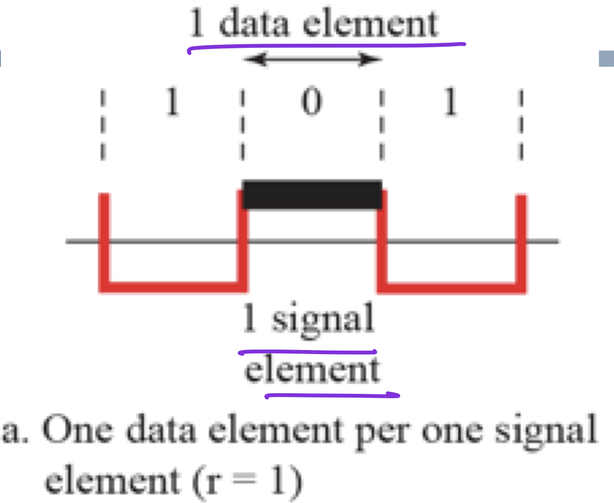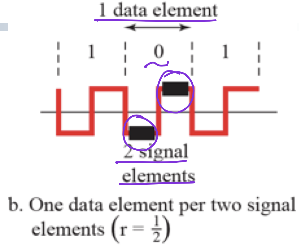 즉, 2개의 signal elements가 1bit를 표현하고, r = 1(Data element)/2(Signal elements)이다.