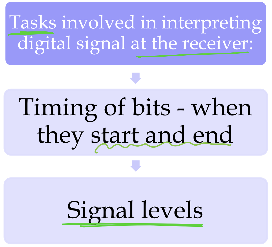 위와 같이 bits의 시작점과 끝점을 식별하여 Signal levels을 Voltage로 표현