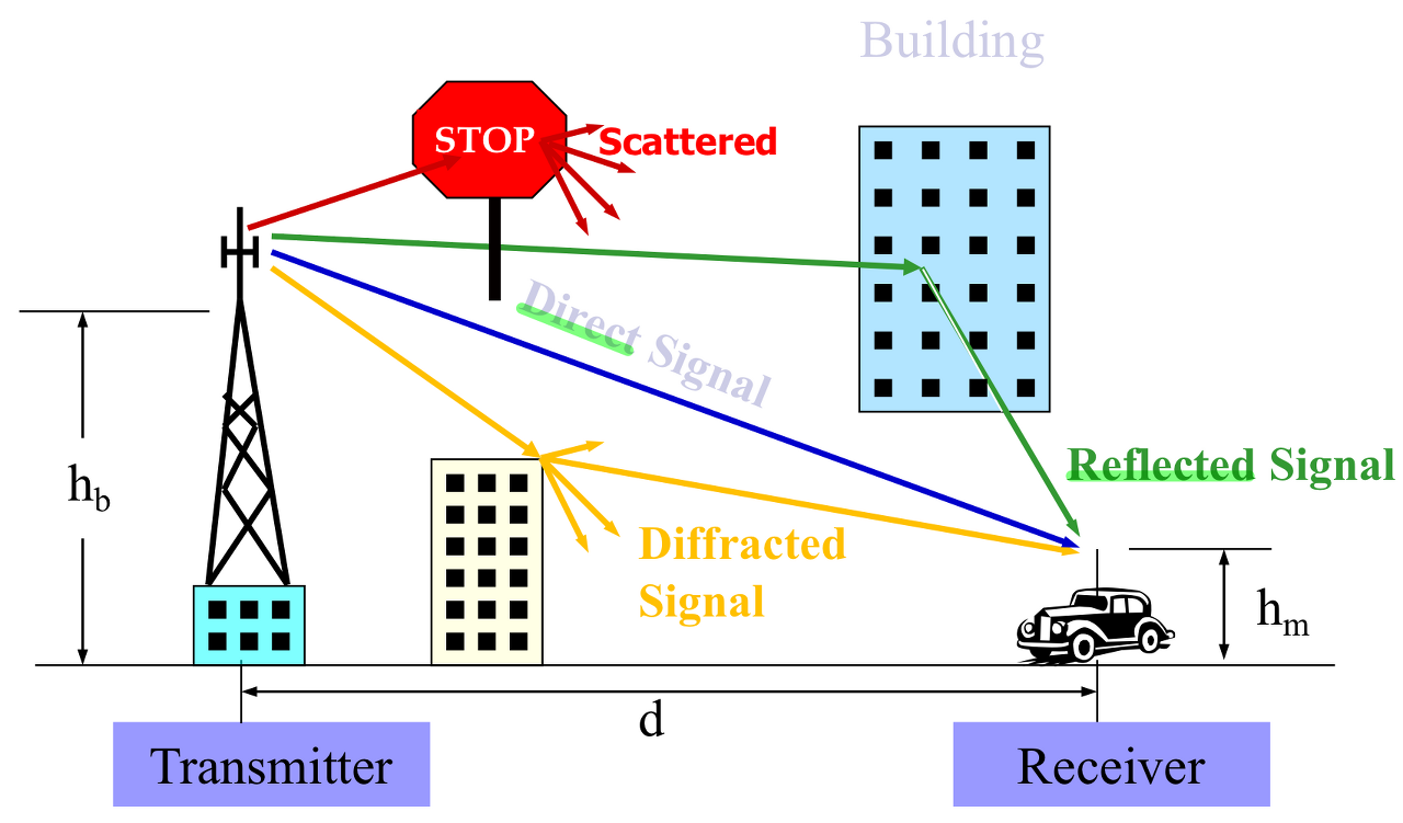 - signal이 반사되어 여러 개의 복사본이 수신될 수도 있다.