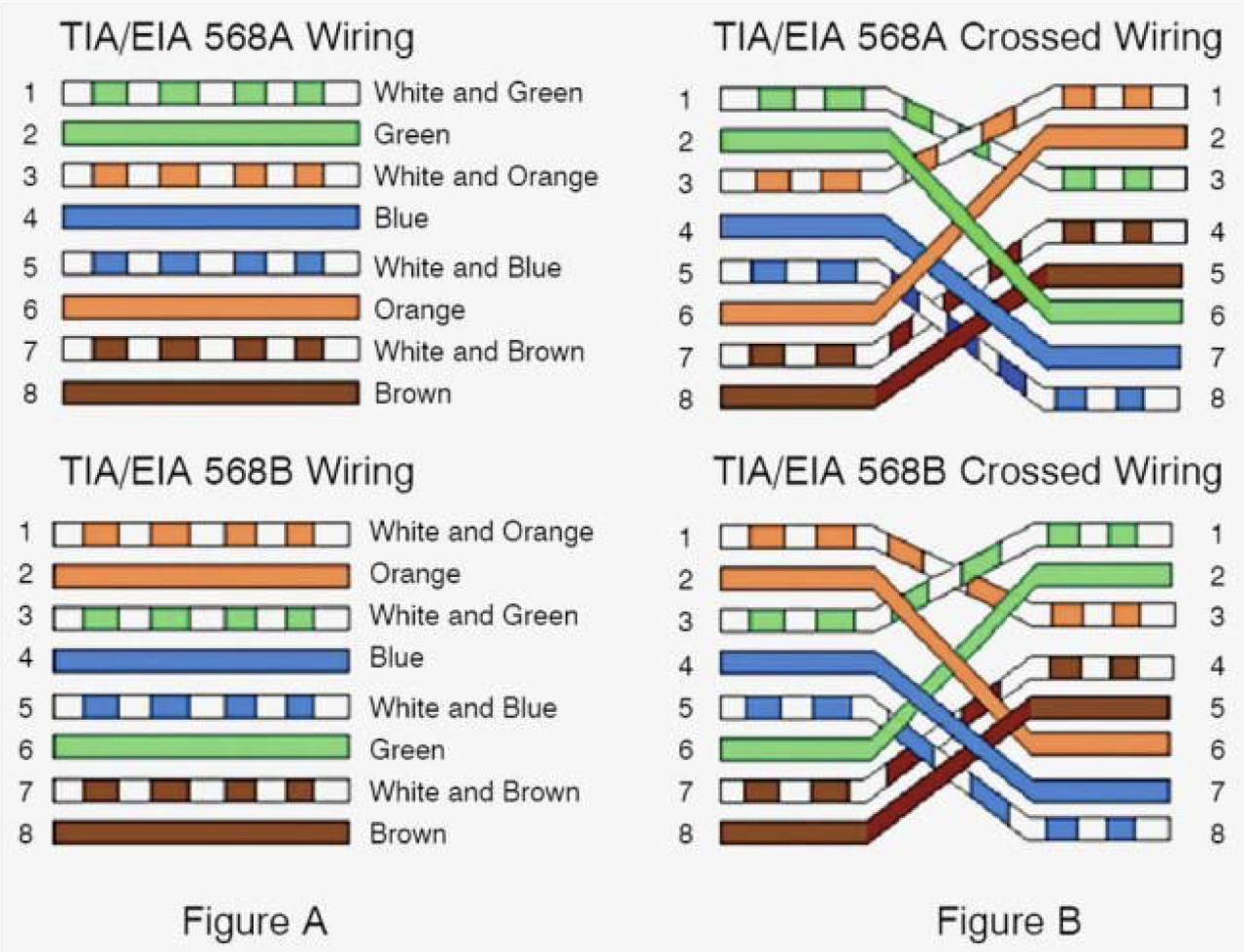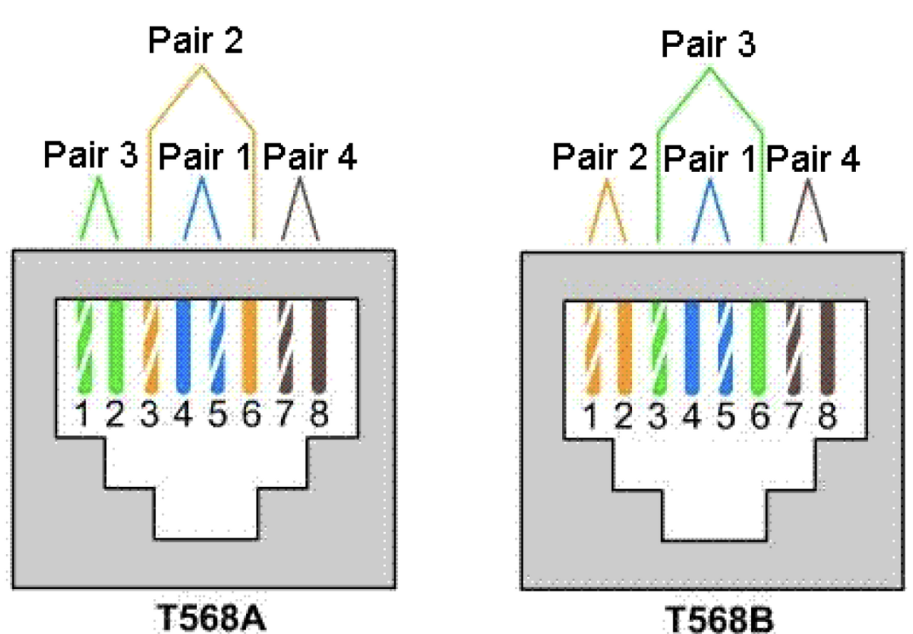 TIA/EIA 568A, TIA/EIA 568B(한국에서 많이 사용)