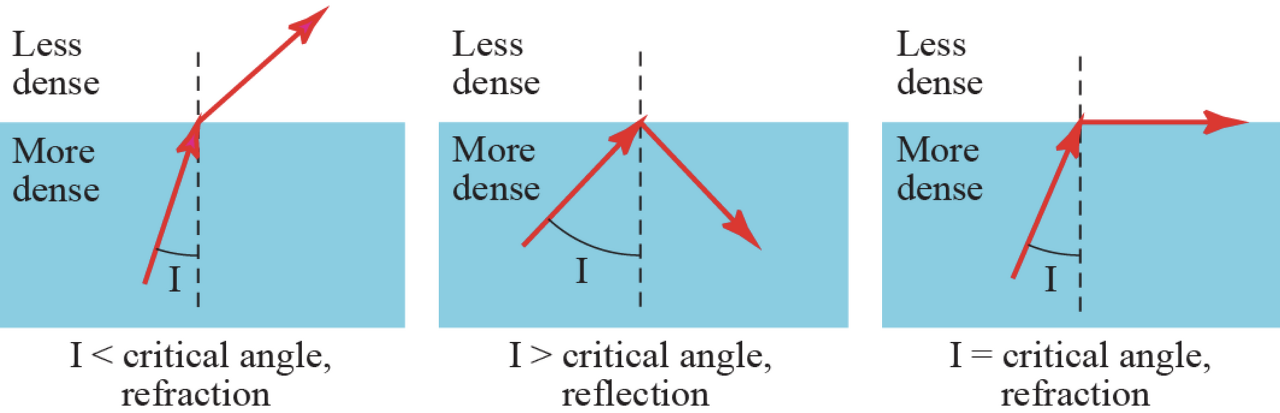 - 입사각에 따라 굴절이 일어나거나, 반사되거나, 매질을 타고 이동하기도 한다.