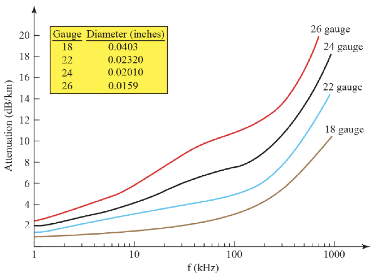 해당 그래프를 보고, 통신할 케이블의 굵기나 주파수를 결정할 수 있다.