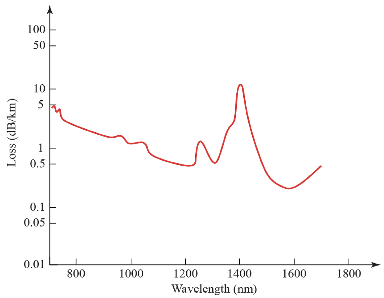 - 파장이 인 구간은 Loss(=attenuation)이 높기 때문에 피해야 한다.