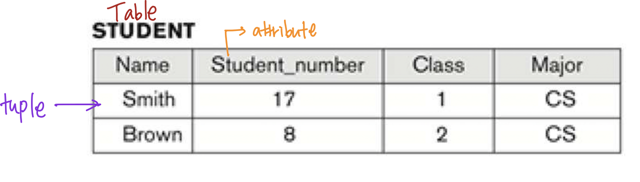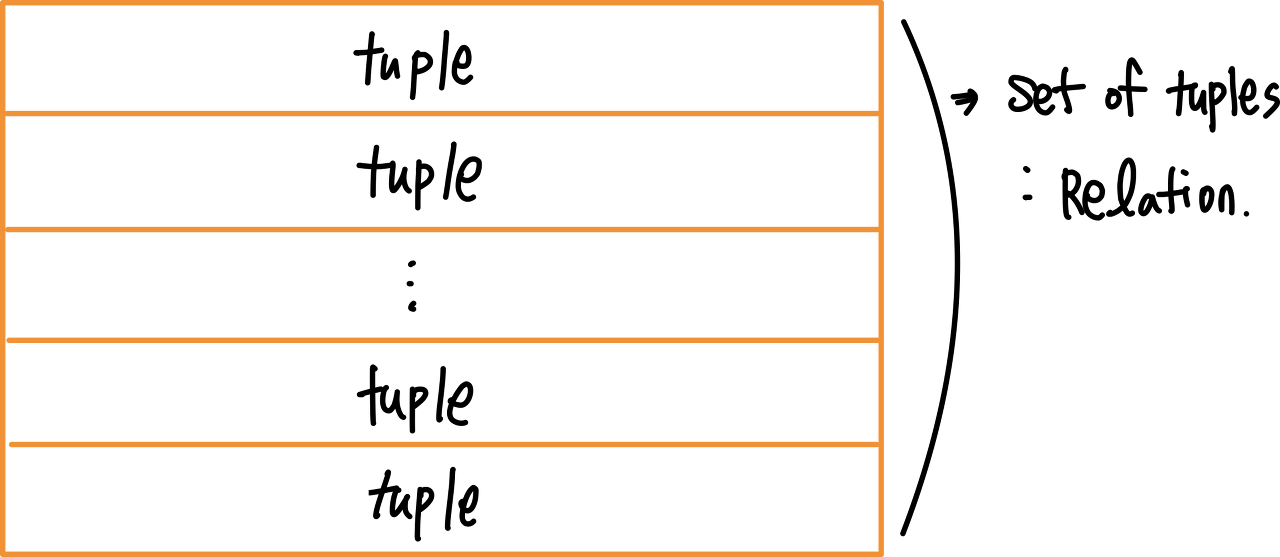 - 의 attributes -> tuple or 에서 attribute의 순서는 지켜져야 한다.