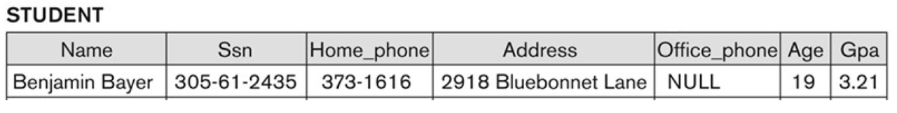 - STUDENT table의 key attribute는 ? Student_Number (Name 또한 중복이 없다면 key 가능)