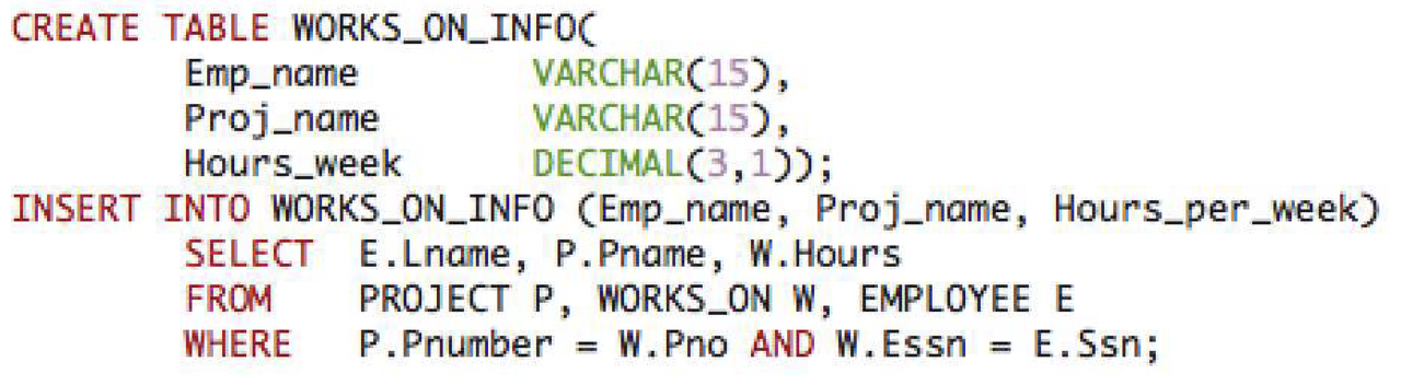 SQL CREATE TABLE Data Definition Statements for Defining a COMPANY Schema