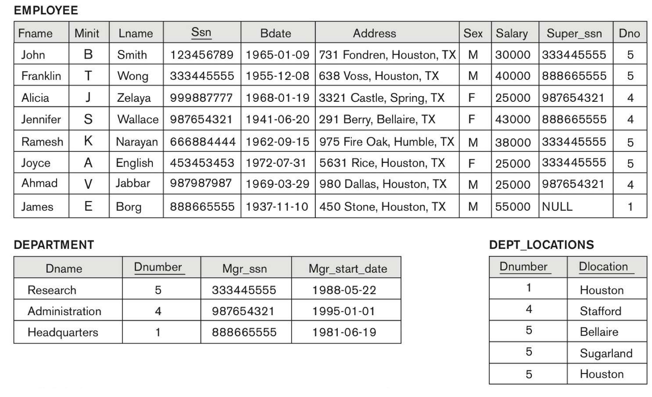- Circular references (순환 참조): e.g. EMPLOYEE table의 Super_ssn