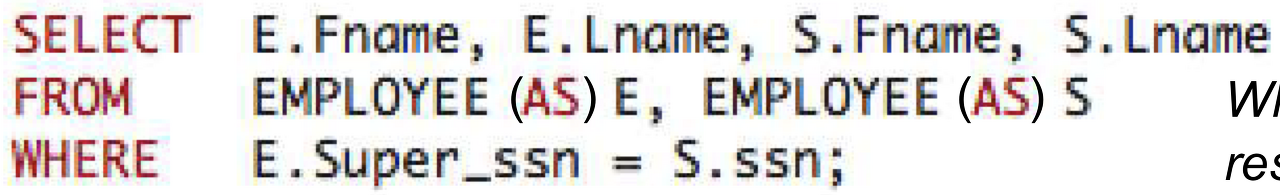 - E_Fn, E_Ln, S_Fn, S_Ln은 result set에 뜨는 name