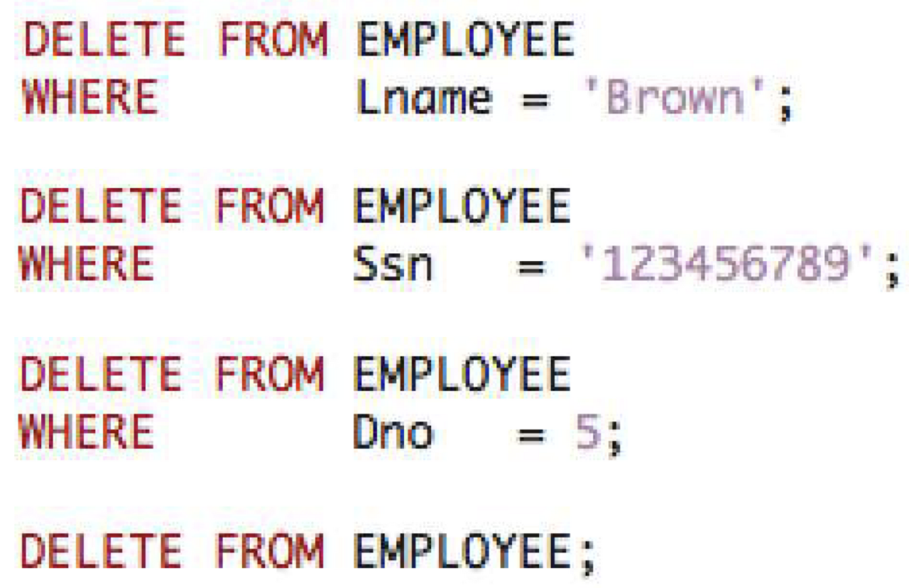 - WHERE 절을 만족하는 tuple의 수에 따라 삭제되는 tuple 수가 결정됨