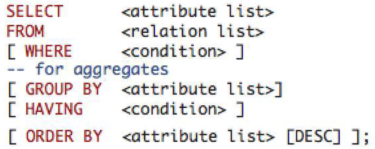 3) aggregate function(집계 함수: sum, avg, max, distinct, ...)이 tuples에 적용될 때, 대부분의 경우에 중복 제거를 원치 않는다. - 중복 제거를 원하는 경우, DISTINCT 키워드를 사용