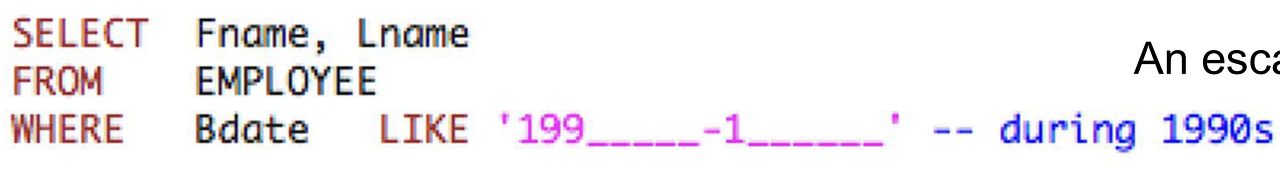- attribute value가 '%'나 '_'를 포함하고 있는 경우 '\'문자 사용